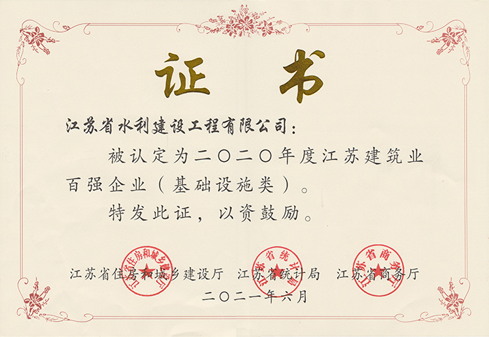 • 2020年度江蘇省建筑業(yè)百?gòu)?qiáng)企業(yè)